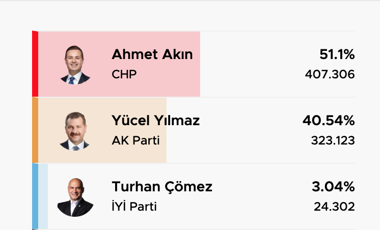 Balıkesir Büyükşehir Belediyesi ve merkez ilçeleri Altıeylül Belediyesi ve Karesi Belediyesi için kazanan adaylar cumhuriyet Halk Partisi’ nden oldu.