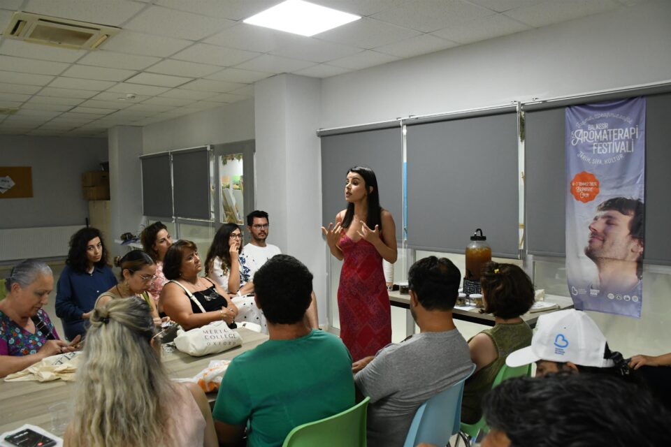 Balıkesir Büyükşehir Belediyesi bünyesinde yer alan Balıkesir Çiftçi Eğitim Merkezi’nde (BAÇEM) Tıbbi ve Aromatik Bitkiler Kursu’na katıldıktan sonra bu sektörde kendi markasını oluşturan güzel oyuncu Güzide Arslan, Balıkesir 5. Aromaterapi Festivali kapsamında “Tıbbi Mantarlarla Tanışma ve Tadım Atölyesi” gerçekleştirdi. Kendisi gibi BAÇEM’in Tıbbi ve Aromatik Bitkiler Kursu’na katılan oyuncu arkadaşı Ergül Miray Şahin’in de katıldığı atölyeye, vatandaşlar büyük ilgi gösterdi.