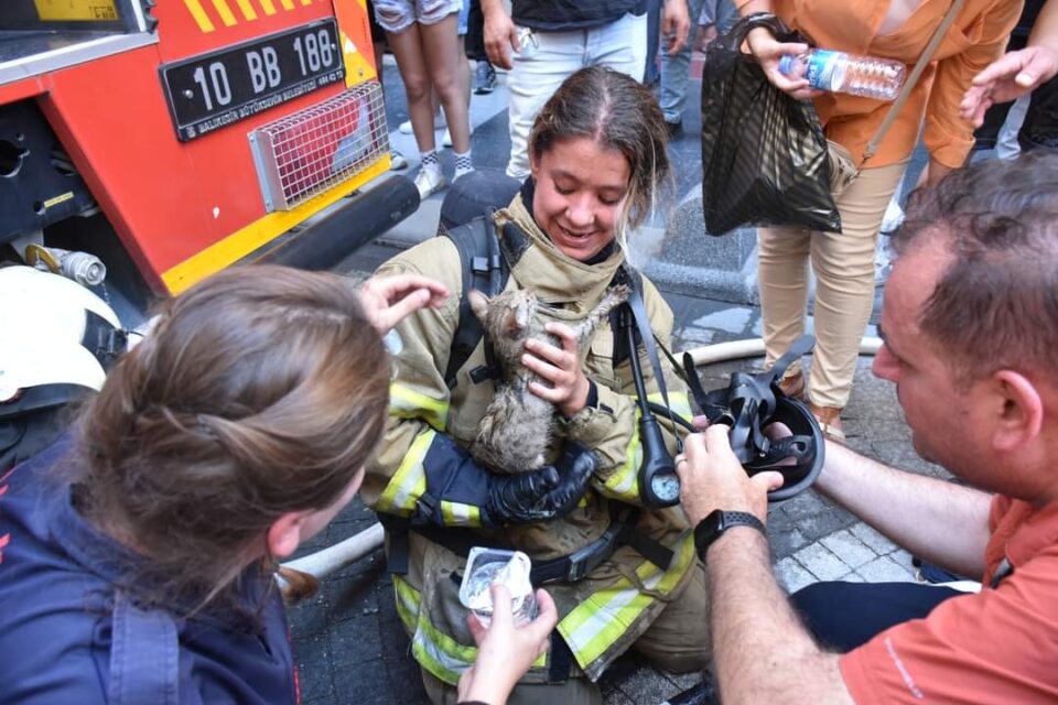 Balıkesir Büyükşehir Belediyesi’nin Kahraman İtfaiye Eri Seray Başol, yangın söndürmeye gittiği evde bitkin halde bulduğu kediyi kendi temiz hava solunum cihazını takarak hayatını kurtardı. Balıkesir Büyükşehir Belediyesi veterinerlerinin tedavi ettiği kedinin sağlık durumu iyi.