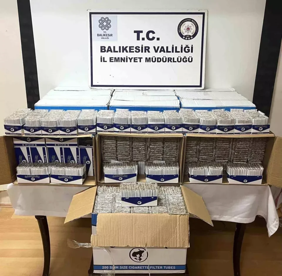 Balıkesir’in Edremit ilçesinde Kaçakçılık ve Organize Suçlarla Mücadele Şube Müdürlüğüne bağlı polis ekipleri piyasaya sürülmeye doldurulmuş hazır halde 100 bin adet makaron sigara ele geçirdi.