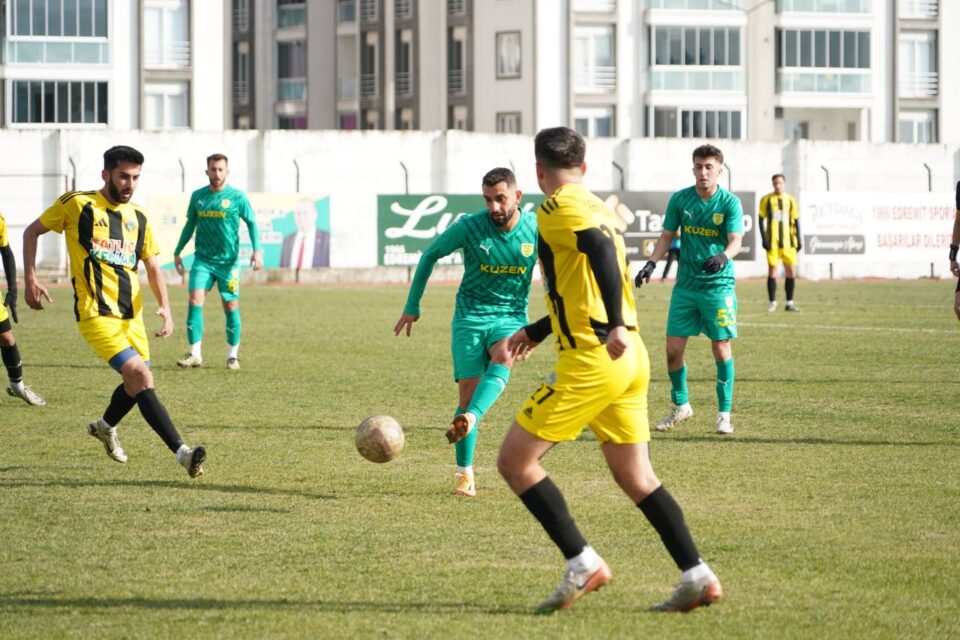Bölgesel Amatör Lig (BAL) 8. Grup’ta şampiyonluk mücadelesi veren 1966 Edremitspor, 19. hafta karşılaşmasında sahasında Alaşehir Belediyespor’u ağırladı. Yeşil-sarılı ekip, ikinci yarıda oyuna giren Furkan Safi ve Furkan Cinkaya’nın (2) golleriyle rakibini 3-0 mağlup ederek puanını 43’e yükseltti. Lider Fethiye İdman Yurdu’nun puan kaybetmesiyle birlikte Edremit temsilcisi zirveye ortak oldu.