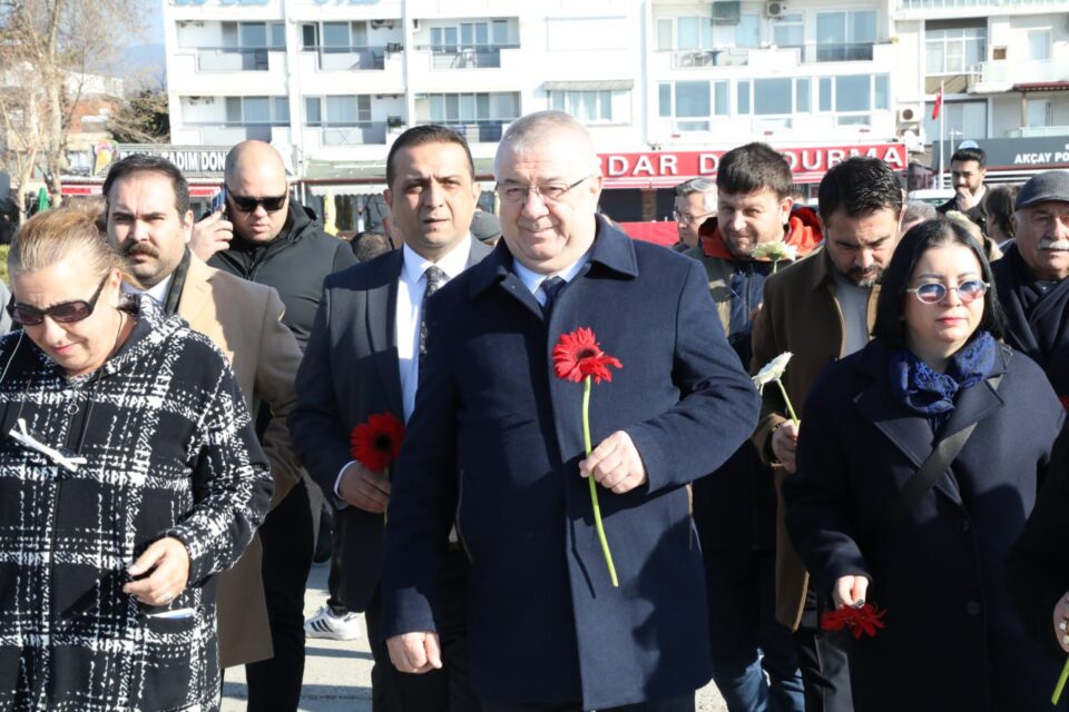 Program, Akçay İskelesi’nde düzenlenen temsili karşılama ile başladı. Soğuk havada deniz yoluyla gelen mübadillerin anısına yapılan canlandırmada, katılımcılara çiçek takdim edildi. Ardından Belediye Başkanı Mehmet Ertaş, Kent Konseyi Başkanı Abdullah Soykan ve katılımcılar tarafından mübadiller anısına denize çelenk bırakılmasıyla devam etti.