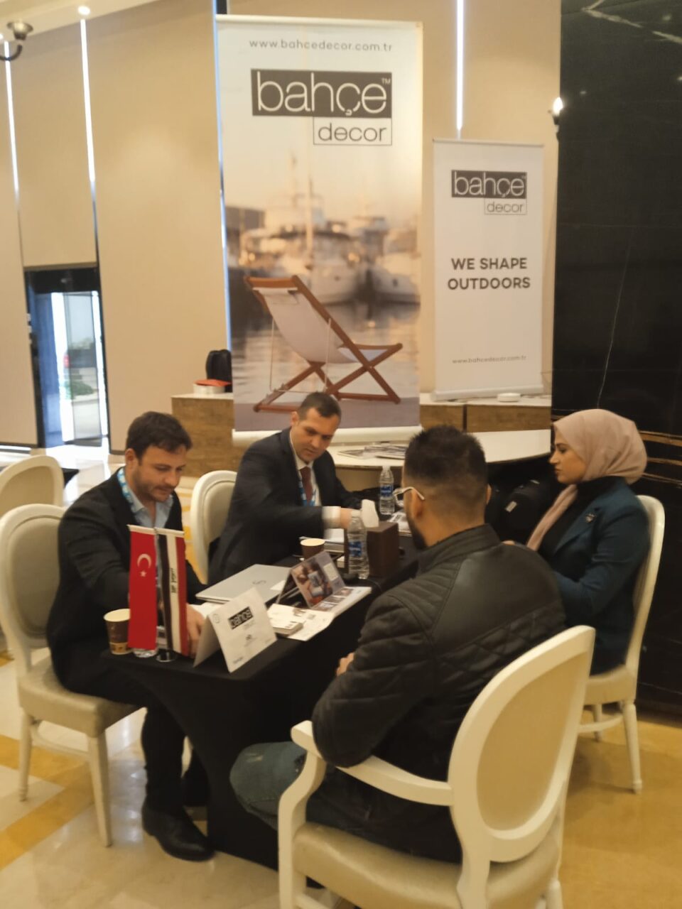 “Irak Mobilya Sektörel Ticaret Heyeti”nde şu firmalar ihracatlarını artırma çabası içinde oldu; “Dekorister Mobilya San. Tic. Ltd. Şti., Niron Grup Sanal Market İletişim Yazılım Gıda Basın Yayın Turizm San. ve Tic. Ltd. Şti., Blue Cape İnşaat Bilişim Mob. Hır. Teks. Tur. Gıda Tar. San ve Tic. Ltd. Şti., Nerr Ofis Mobilyaları San. ve Tic. A.Ş., Konfor Dayanıklı Tüketim Malları Mobilya Deri Tekstil İnşaat Turizm San. ve Tic. A.Ş., Kaleraf Sistemleri San. ve Tic. Ltd. Şti., Live Design Koltuk Mobilya San. ve Tic. Ltd. Şti., Meltem Bebek ve Genç Mobilya San. Tic. A.Ş, Egeli Polisaj Mob. San. ve Tic. A.Ş., Bofigo Grup San. Tic A.Ş., Simre Mobilya Dekorasyon ve Tekstili ve Aksesuarları San. Tic. A.Ş., Seiz Debriyaj Kalıp İnşaat Elektrik Sanayi Ticaret Limited Şirketi, Sandalyeci Dayanıklı Tüketim Malları Mobilya San. ve Tic. A.Ş., Decosit Mobilya İth. İhr. San. ve Tic. Ltd. Şti., Ofis 232 Mobilya İnş. San. ve Tic. Ltd. Şti., Dovi&ofisbazaar, Onpo Mobilya İth. İhr. San. ve Tic. Ltd. Şti.”