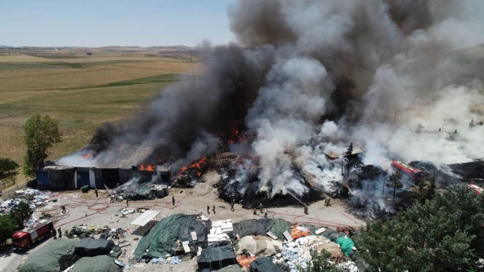 Ankara’nın Akyurt ilçesinde bulunan bir yatak fabrikasında çıkan yangına itfaiye ekipleri müdahale ediyor.