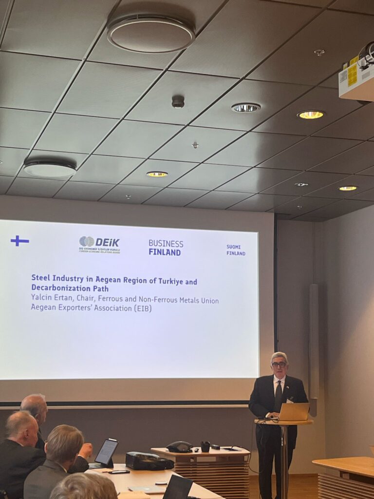 Finlandiya’nın Başkenti Helsinki’de gerçekleşen Jetco toplantısına Ege İhracatçı Birlikleri’ni temsilen katılan Yalçın Ertan, “Türkiye’nin 2024 yılında Finlandiya’ya ihracatı 463 milyon dolar oldu. Bu ihracatın 60 milyon dolarlık dilimini demir ve demirdışı metaller sektörü yaptı. Bu ihracat rakamımızın daha yüksek seviyelere ulaşması için Avrupa Birliği’nin Türk demir çelik ürünlerine uyguladığı kotaların kaldırılmasını istiyoruz” diye konuştu.