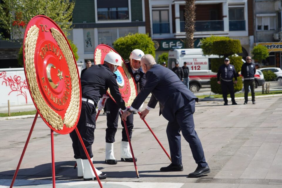 Edremit Şehit Hamdi Bey Meydanı’nda gerçekleştirilen tören, saygı duruşu ve İstiklal Marşı’nın okunmasıyla başladı. Atatürk Anıtı’na çelenk sunumunun ardından öğrenciler tarafından şiirler okundu. Törene Edremit Kaymakamı Ahmet Odabaş, 19. Komando Tugayı Garnizon Komutan Vekili Piyade Albay İsmail İbiş, Edremit Belediye Başkanı Mehmet Ertaş, Cumhuriyet Başsavcısı Medet Akcan, siyasi parti temsilcileri, belediye başkan yardımcıları ve meclis üyeleri ile daire müdürleri katıldı.