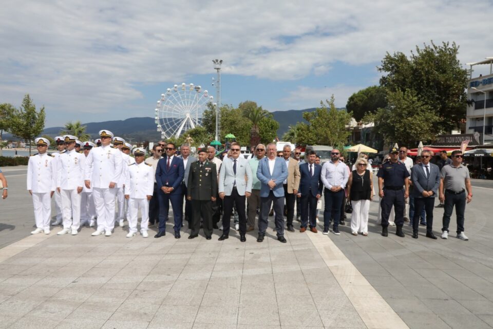 Tören, Atatürk Anıtı’na çelenk sunulmasıyla başladı. Ardından Sahil Güvenlik Komutanlığı’na ait botla Akçay sahilinden denize açılarak, deniz şehitleri anısına denize çelenk bırakıldı.
