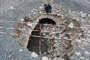 Hatay’ın Antakya ilçesinde depremde yıkılan binanın altından tarihi bir su kanalı çıktı. Arazide meydana gelen göçükle ortaya çıkan yüzeye yakın tarihi su kanalı vatandaşların ilgisini çekti. Muhtar, “Aşırı yağmurlardan sonra burada yaşayanlar alttaki su sesini duymadılar mı diye düşündüm. Depremden sonra hepsi gün yüzüne çıktı. Bunlar bizim geçmişimiz” dedi.