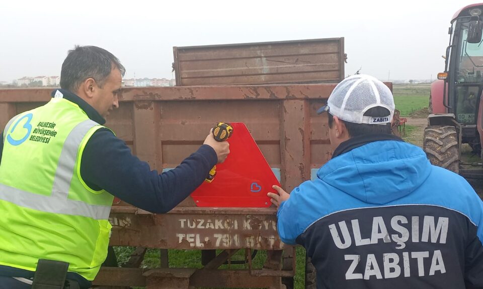 Balıkesir Büyükşehir Belediyesi tarafından traktör römorklarının gece görünürlüğünü artırmak ve traktör kazalarını en aza indirmek amacıyla Gönen’in Muratlar, Karaağaçalan, Bakırlı ve Karalarçiftliği mahallelerinde ikamet eden vatandaşların traktörlerine reflektif uyarı levhası montajı gerçekleştirildi.