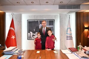 Balıkesir Büyükşehir Belediye Başkanı Ahmet Akın, 23 Nisan Ulusal Egemenlik ve Çocuk Bayramı dolayısıyla koltuğunu temsili olarak Kuzey Özcan ve Meryem Bacakoğlu’na devretti.